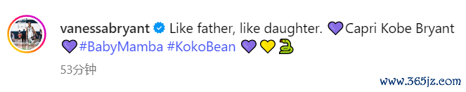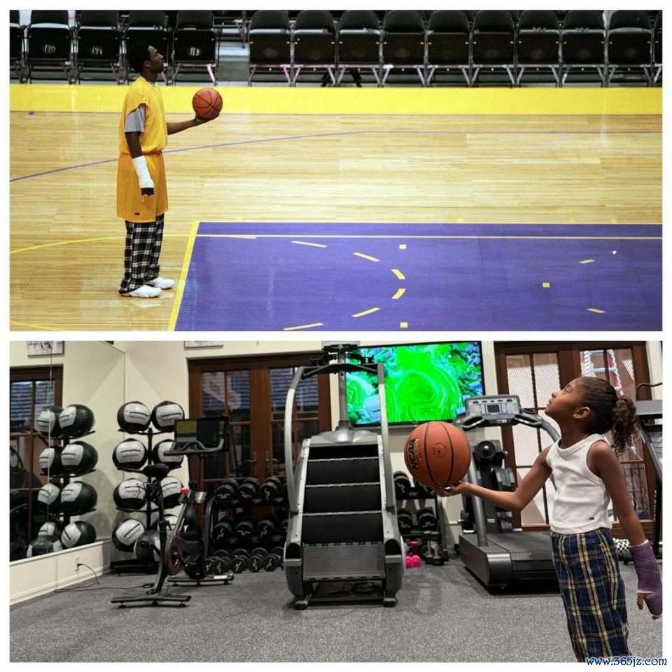 瓦妮莎晒出了卡普里和父亲科比同样动作的画面,两人所穿的裤子也非常相似,手臂也都戴着石膏。她复刻的是1999年科比的标志性瞬间 —— 当时科比手腕骨裂 ,穿着睡裤也要坚守 练习 。瓦妮莎配文:“有其父必有其女,卡普里-科比-布莱恩特。”