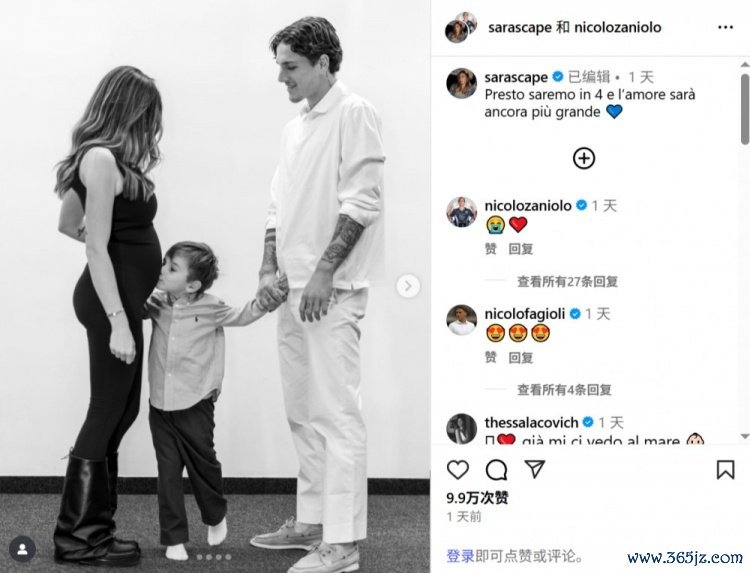 恭喜😭❤️扎尼奥洛社媒宣布将与妻子迎来第二个孩子
